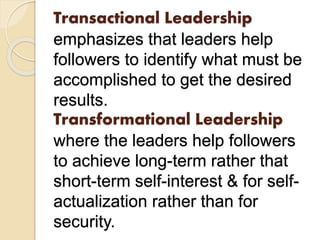 Authoritarian Democratic Laissez-faire. 12Instrumental leadership refers to leadership that emphasizes the. Personal satisfaction of job performance by all members.